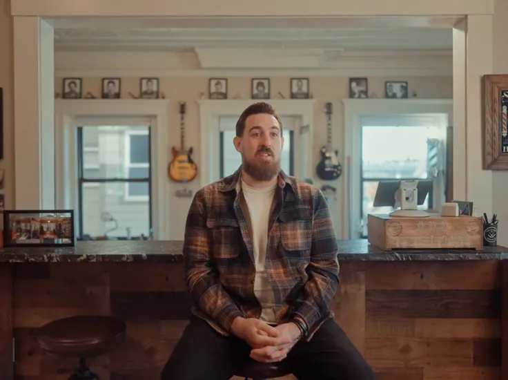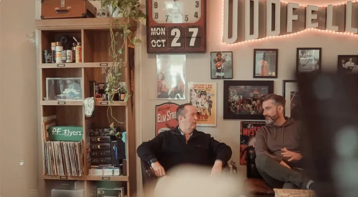 Mike Trowbridge Jr. opened Odd Fellows Barber Co. in 2021 in his hometown of Mansfield. The barbershop is located in a distinctive space that was one of the Odd Fellows fraternal society's old meeting lodges. Mike embraced this history, crafting a unique "upstairs barbershop, kind of speakeasy vibe" and a brand that is inclusive. He aims for a space where everyone feels welcome, describing it as "for the odd ones out. For the ones who bet the odds". The environment is designed to feel welcoming, as if customers are "coming into our living room and we're... hanging out". The brand ties in elements of the Odd Fellows insignia, including the scissor and razors, the all-seeing eye, and chains.